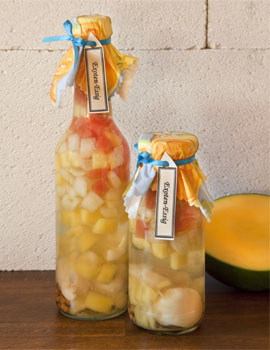 Exoten-Essig mit Mango, Lychees & Papaya, zu Kopfsalat, Chinakohl, Eichblatt- und Eisbergsalat